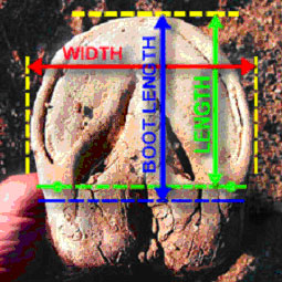 In den meisten Fällen wird die Breite der Hufe für die Wahl der Größe der Hufschuhe dominieren. Offensichtlich ist der Fall, wenn die Breite nicht in eine bestimmte Größe passt, dann muss man die nächst höhere Größe nehmen. Bevor man den Huf in eine bestimmte Größe "quetscht" ist es besser, auch da die nächst höhere Größe anzuwenden.